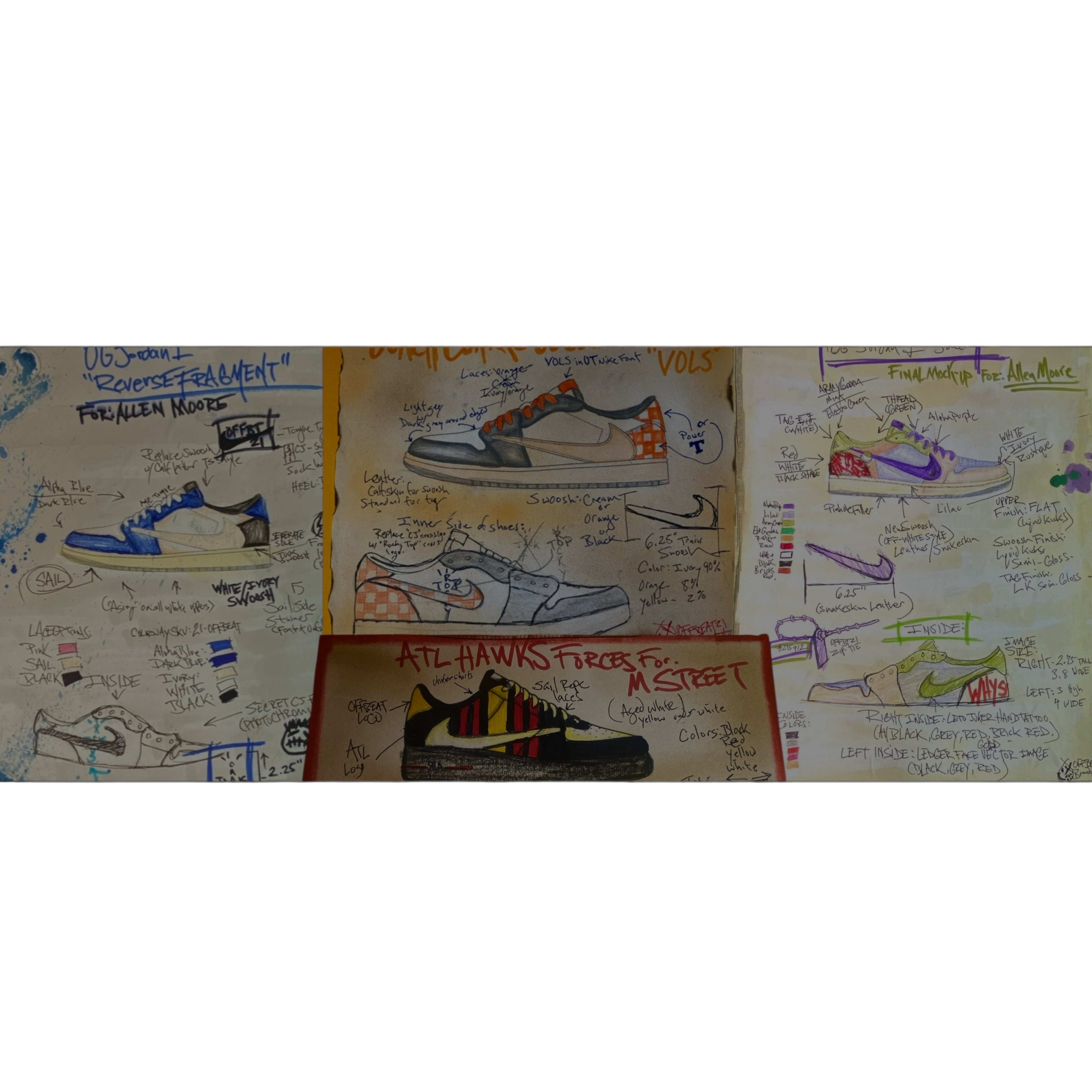 “Inspired by classic Jordans, Travis Scott silhouettes, and the Off-White deconstructed era.”